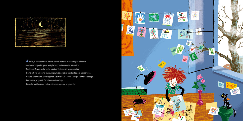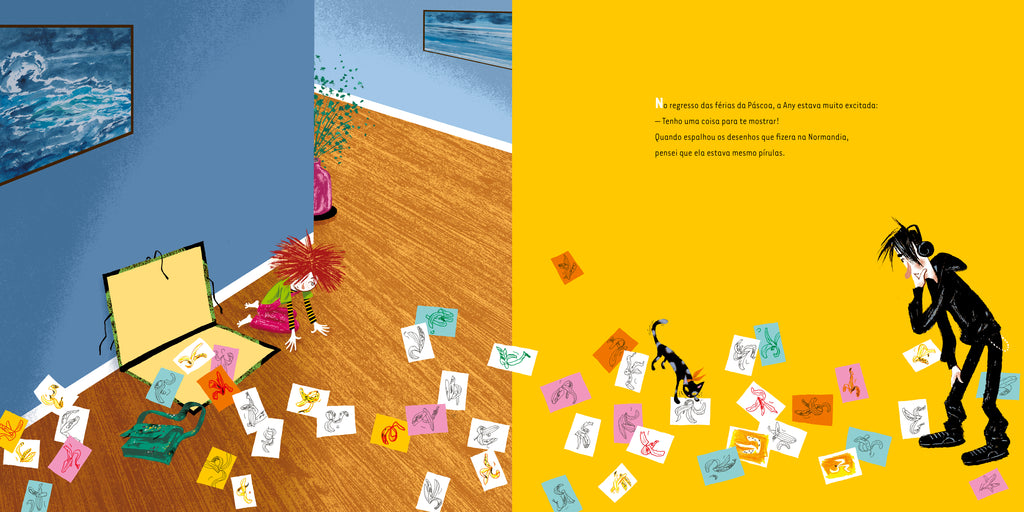 A Any, sem o avô, não seria a Any. Ele é o farol da sua vida. Um velhote com rodinhas que pinta o mar há mais de oitenta anos, todos os dias. A Any também desenha todos os dias, tudo e mais alguma coisa. Os ratinhos que o gato lhe traz, as mãos do avô. Até que, durante umas férias, descobre aquilo que verdadeiramente a cativa: cascas de banana. Ninguém sabe o que vê nelas, nem o avô, nem Max, o seu melhor amigo. Mas os anos passam, e a obsessão de Any cresce, uma banana de cada vez.